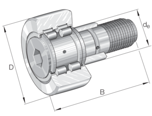 Cam rollers are similar in their construction to single and double-row support rollers, except that the raceway is formed by a heavy-section roller stud with a fixing thread and lubrication hole.