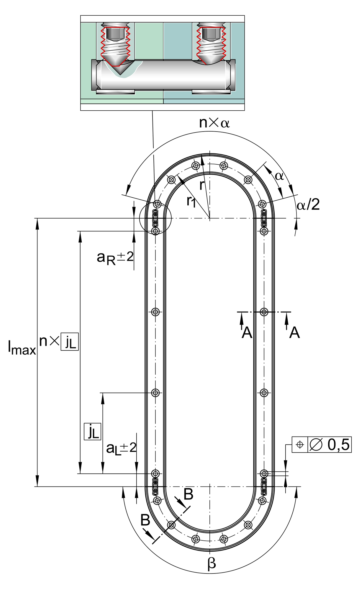 solid profile, curved guideway